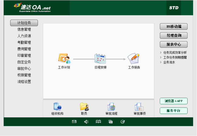 《速達(dá)OA.Net》是速達(dá)公司以二十年開發(fā)經(jīng)驗積淀、融合數(shù)萬家客戶的需求理解與管理經(jīng)驗,精心打造的一款OA協(xié)同創(chuàng)新系統(tǒng),產(chǎn)品創(chuàng)造性的將C\S&B\S&APP結(jié)構(gòu)融為一體,秉承速達(dá)軟件一貫的易用性和實用性,以審批流程為核心,審批人條件指派方式實現(xiàn)了審批流程兼容的最大化,實時到位的提醒致力提高企業(yè)工作效率,系統(tǒng)預(yù)設(shè)通用功能模塊,并支持自定義業(yè)務(wù)和自定義報表,滿足企業(yè)個性化功能拓展的需要,并可通過部門進(jìn)行數(shù)據(jù)權(quán)限分配,全面提升企業(yè)管理效率和管理水平。